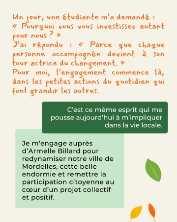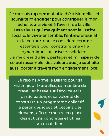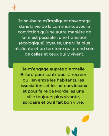 Certains sont engagés dans la vie associative, d’autres non, certains sont des élus et donc capables d’être immédiatement opérationnels ; toutes et tous partagent un même élan : être utiles au bien commun, améliorer le quotidien des habitants et construire un avenir désirable pour Mordelles.