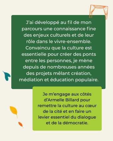 Guidés par des valeurs fortes, ouverture, tolérance, solidarité, esprit collectif, imagination et innovation au service du bien-être de toutes et tous, nous formons une équipe déterminée et prête à agir.